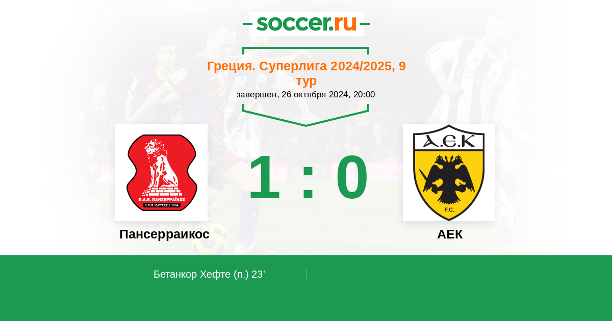 23' Гол с пенальтиЛоготип ПансерраикосБетанкор Хефте (10) - 1:0 (П)