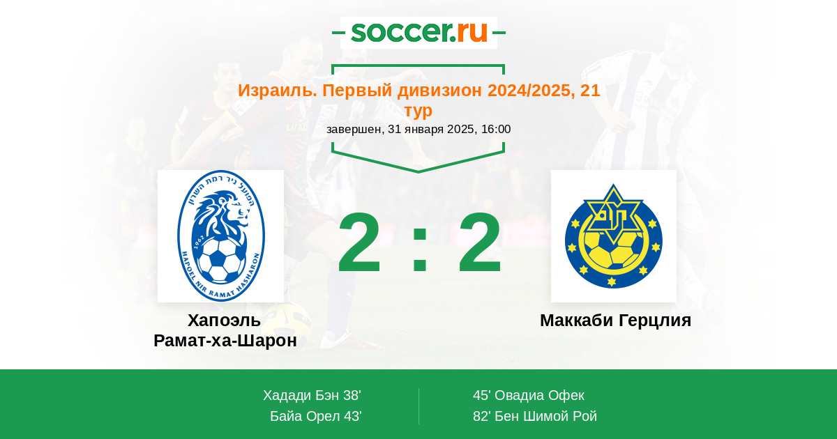 43' ГолЛоготип Хапоэль Рамат-ха-ШаронБайа Орел - 2:0