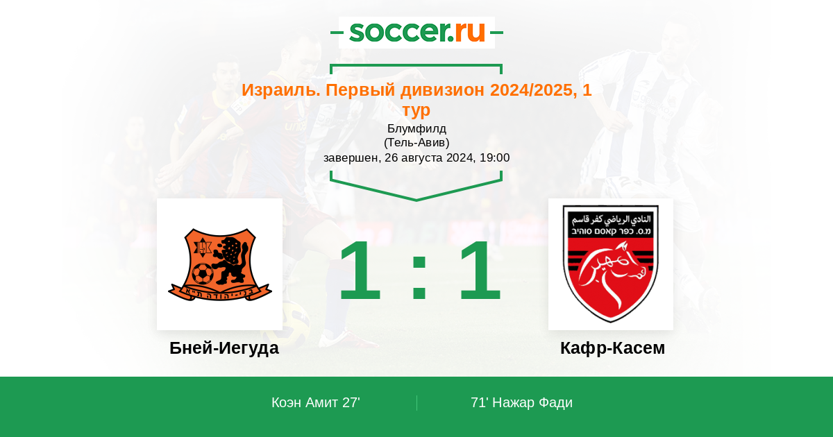 27' ГолЛоготип Бней-ИегудаКоэн Амит - 1:0