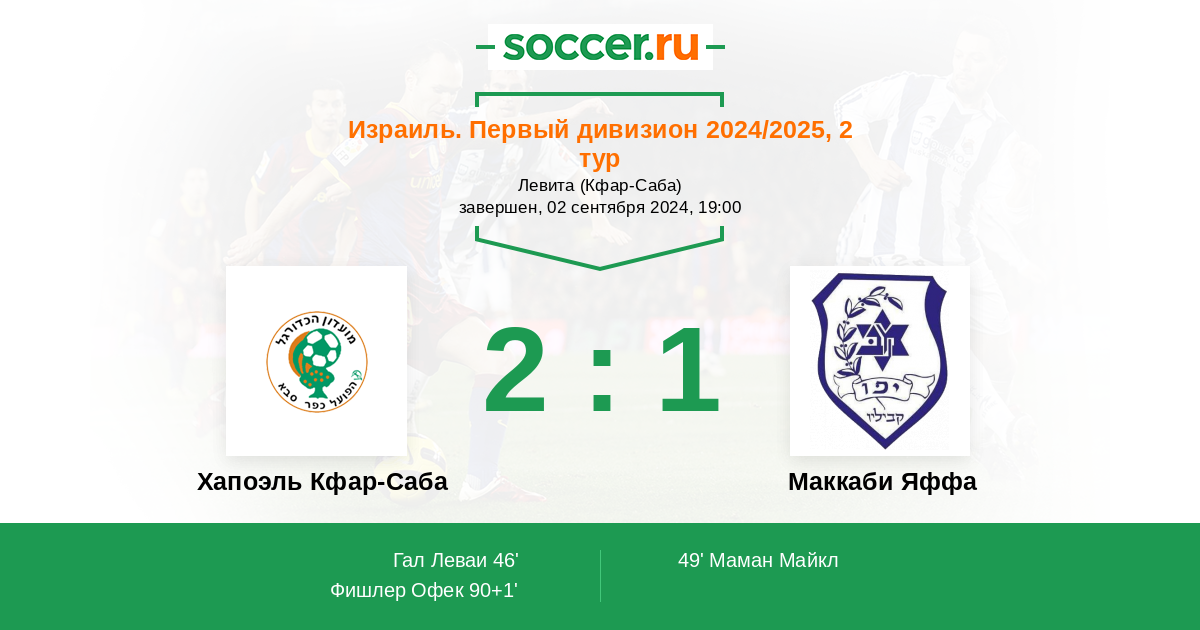 46' ГолЛоготип Хапоэль Кфар-СабаГал Леваи - 1:0