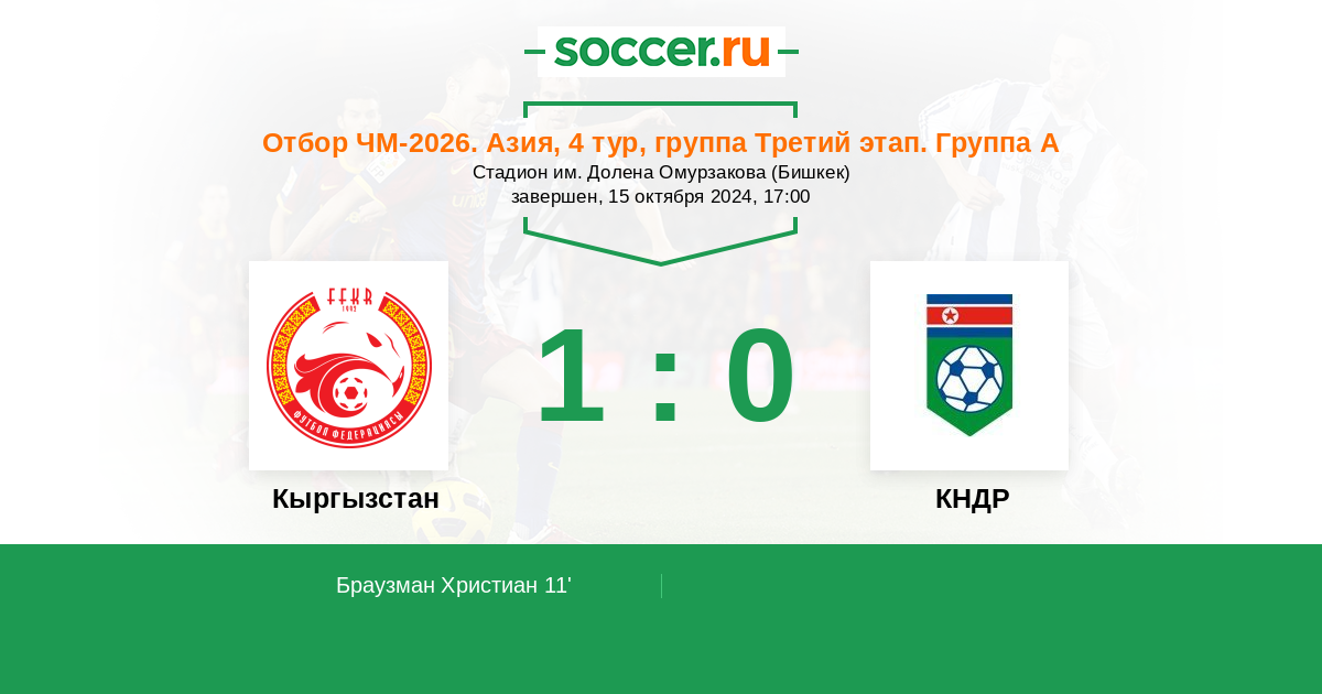 85' Желтая карточкаКНДРИл-Гван Чонг (11, п) получил ж.к.