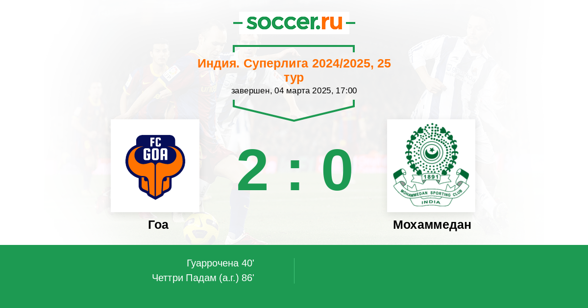 0 | Офсайды | 2 |