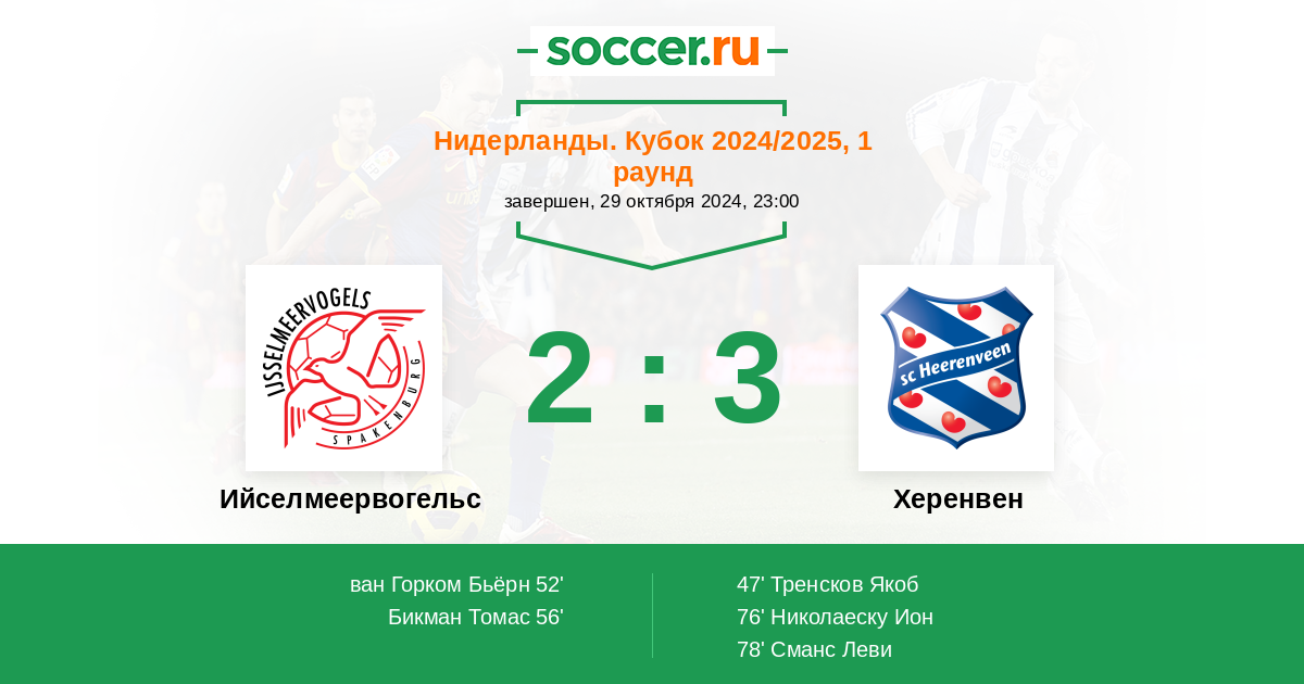 56' ГолЛоготип ИйселмеервогельсБикман Томас (7, п) (Логотип ИйселмеервогельсАфакер Маруан (11, п)) - 2:1