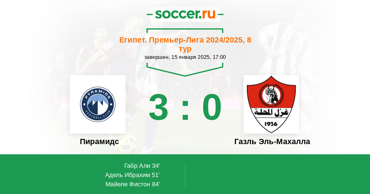 34' ГолЛоготип ПирамидсГабр Али (5, з) (Логотип ПирамидсЭль Карти Валид (18, п)) - 1:0