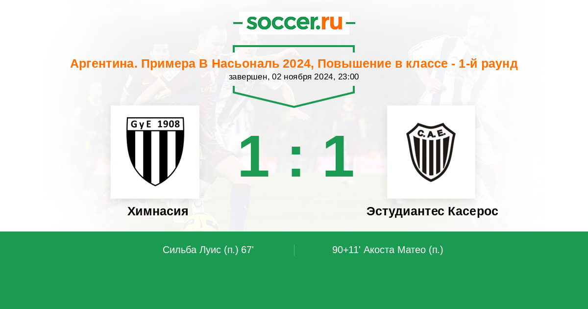 90+11' Гол с пенальтиЛоготип Эстудиантес КасеросАкоста Матео - 1:1 (П)