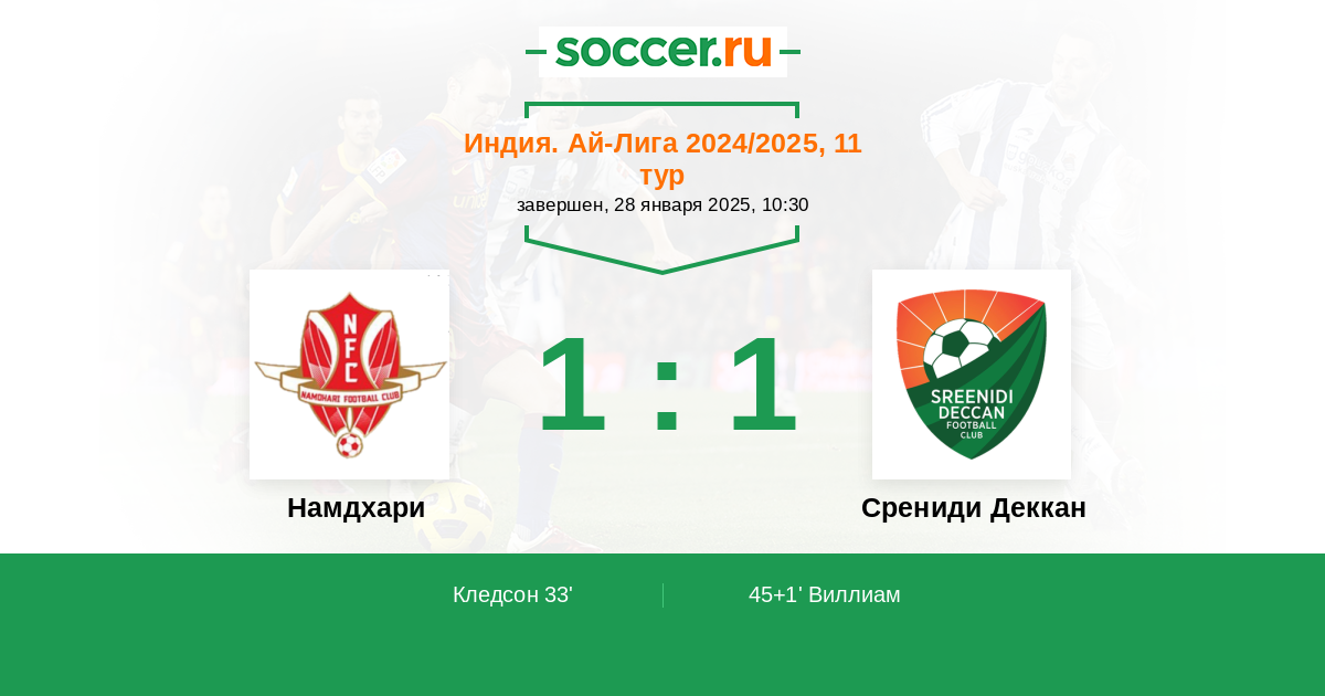 33' ГолЛоготип НамдхариКледсон (9) - 1:0
