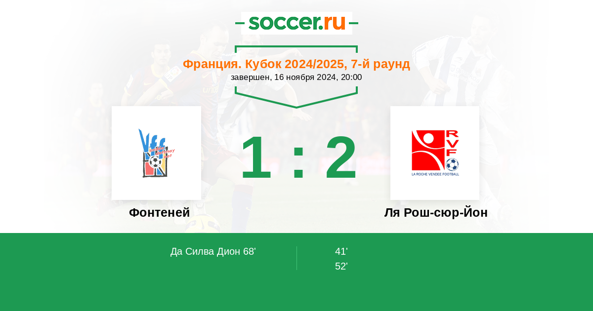 41' ГолЛоготип Ля Рош-сюр-ЙонC. Godet - 0:1