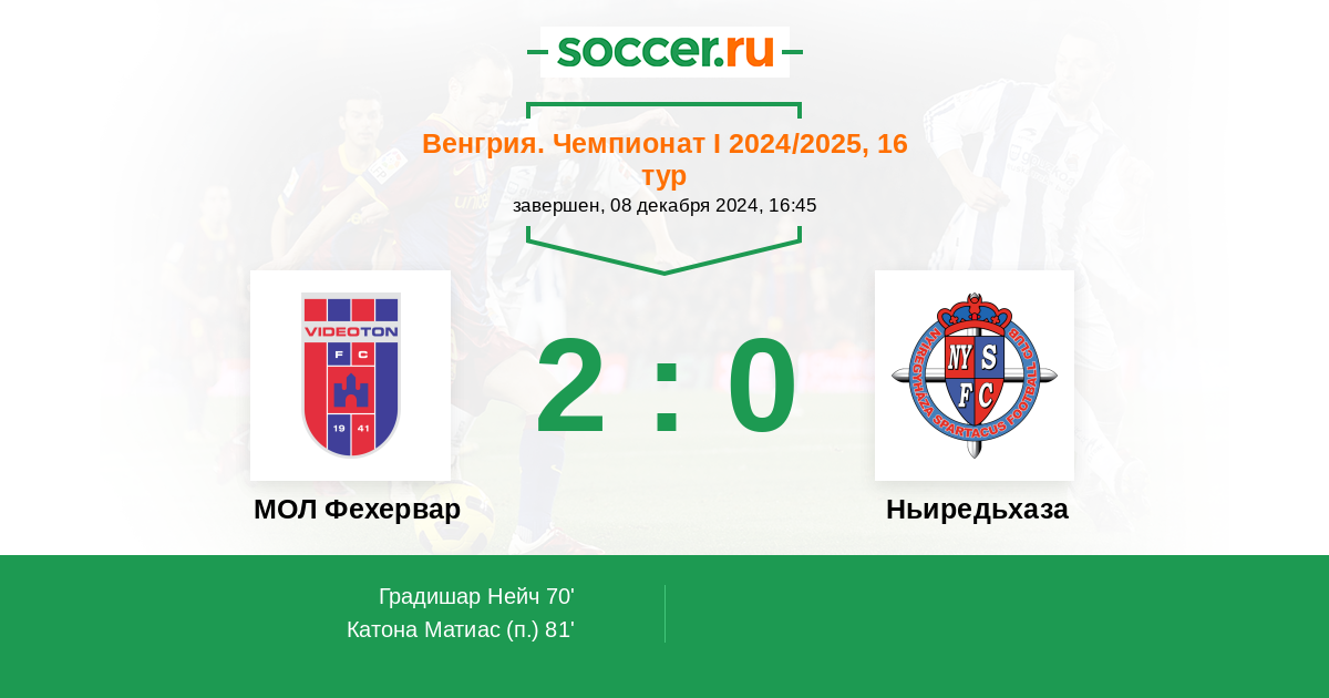 81' Гол с пенальтиЛоготип МОЛ ФехерварКатона Матиас (77) - 2:0 (П)