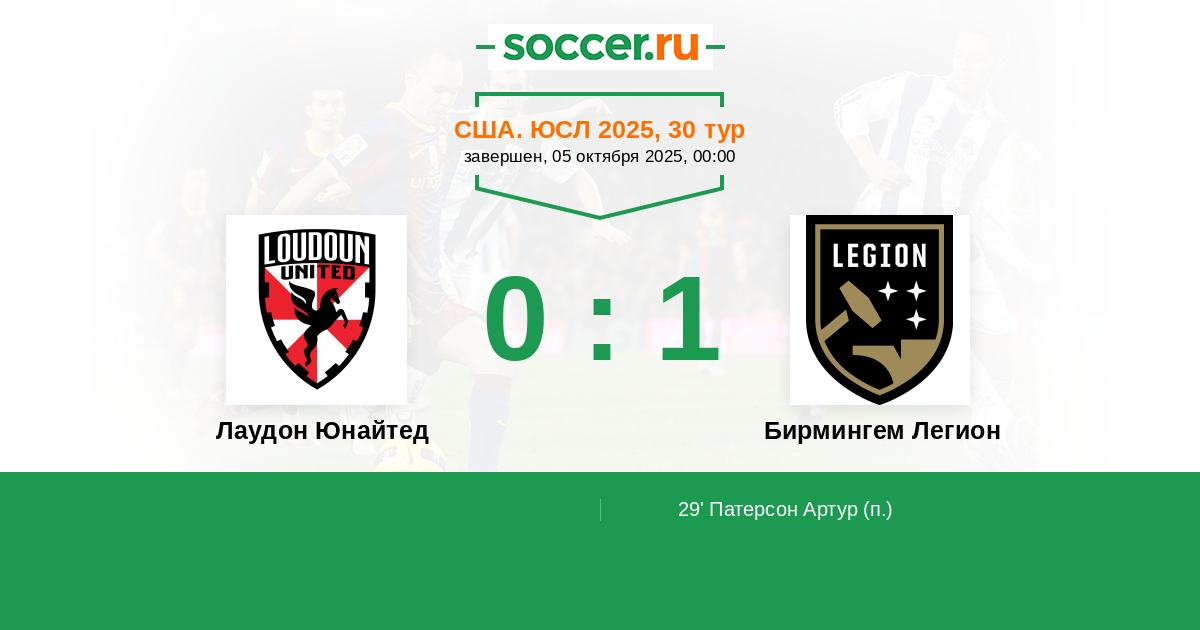 29' Гол с пенальтиЛоготип Бирмингем ЛегионПатерсон Артур (20) - 0:1 (П)