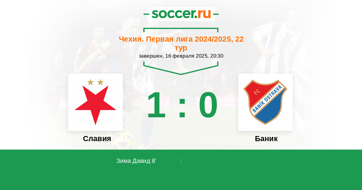 8' ГолЛоготип СлавияЗима Давид (4, з) (Логотип СлавияПровод Лукаш (17, н)) - 1:0