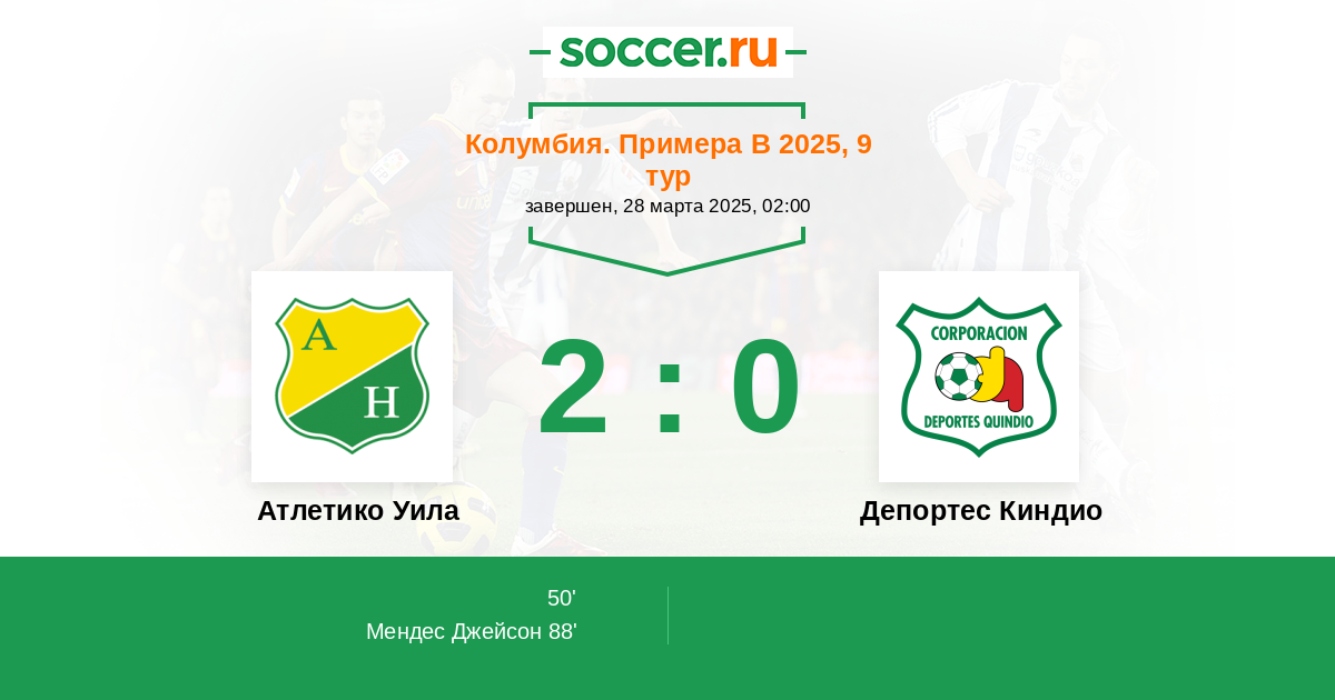 70' Желтая карточкаЛоготип Депортес КиндиоЯбур Джоан получил ж.к.
