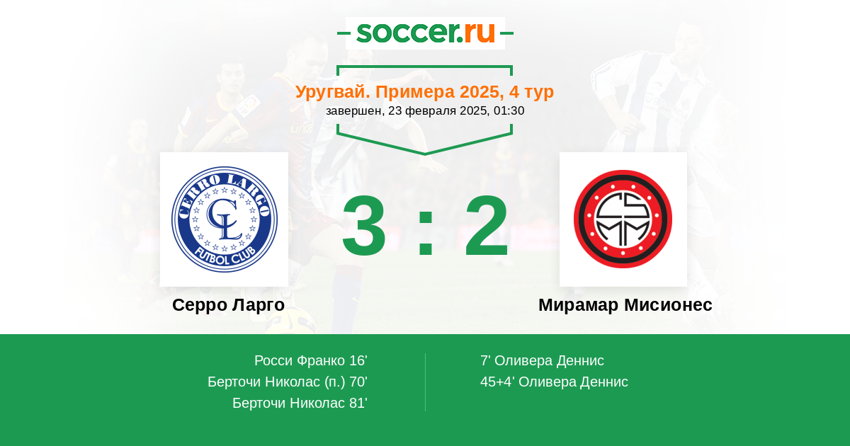 16' ГолЛоготип Серро ЛаргоРосси Франко (9) - 1:1