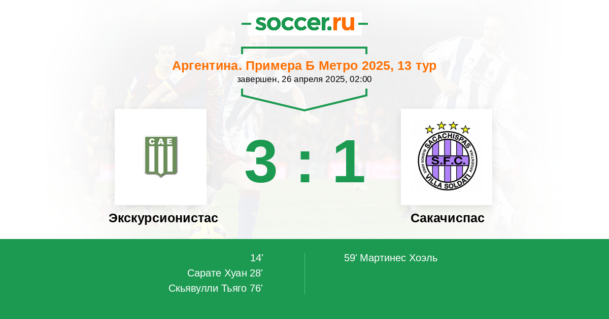 75' ЗаменаЛоготип ЭкскурсионистасСарате Хуан уходит с поля