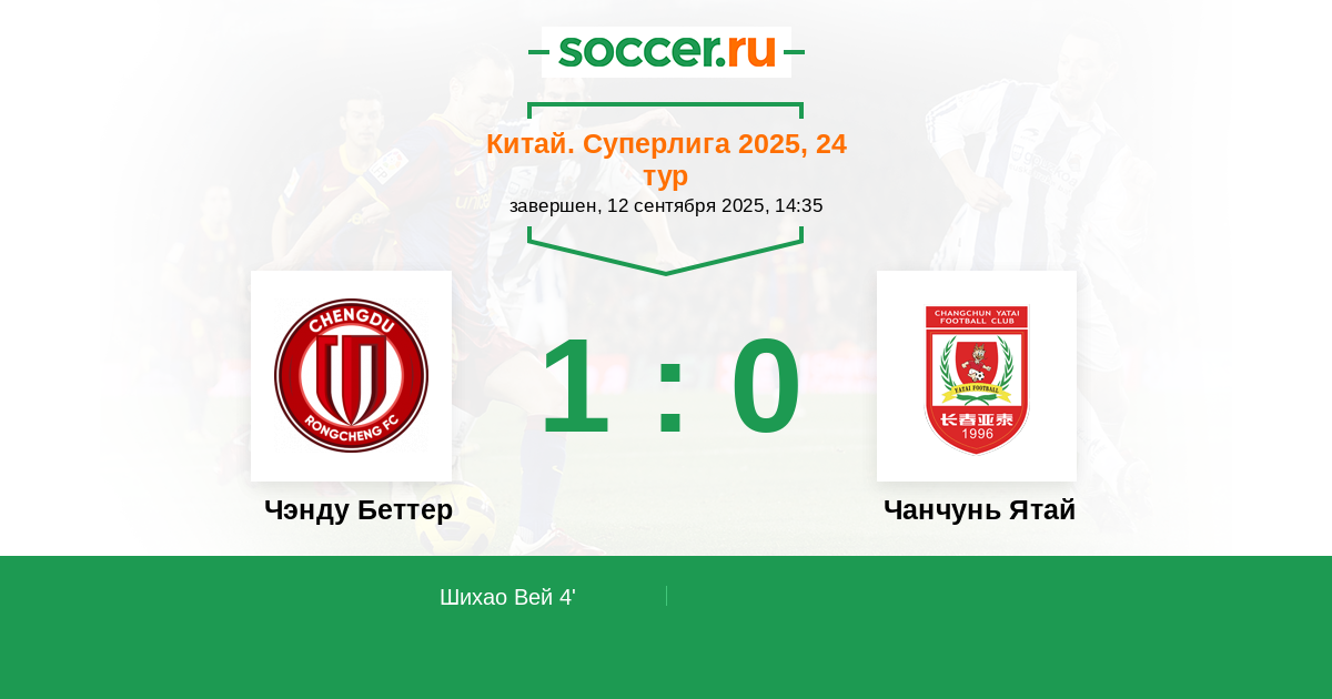 4' ГолЛоготип Чэнду БеттерШихао Вей (7, п) - 1:0