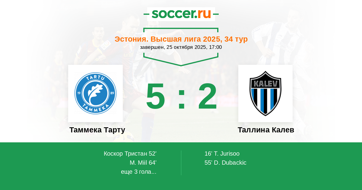 89' ЗаменаЛоготип Таммека ТартуКоскор Тристан (19) уходит с поля