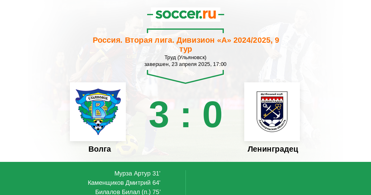 31' ГолЛоготип ВолгаМурза Артур (70) - 1:0