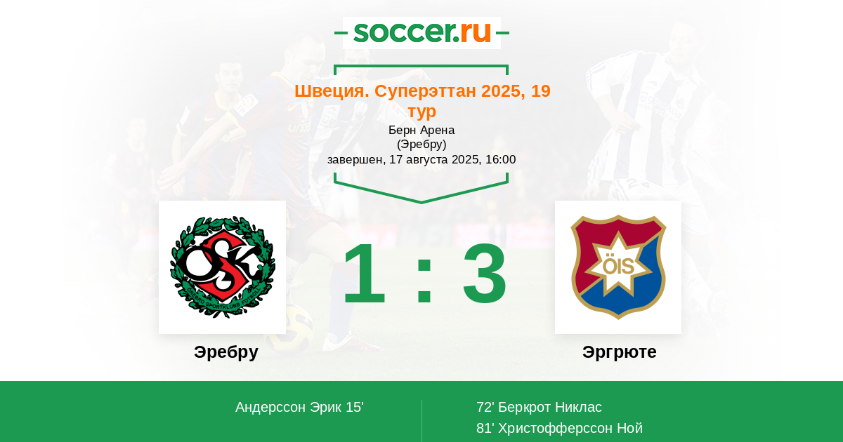 15' ГолЛоготип ЭребруАндерссон Эрик (7, п) - 1:0