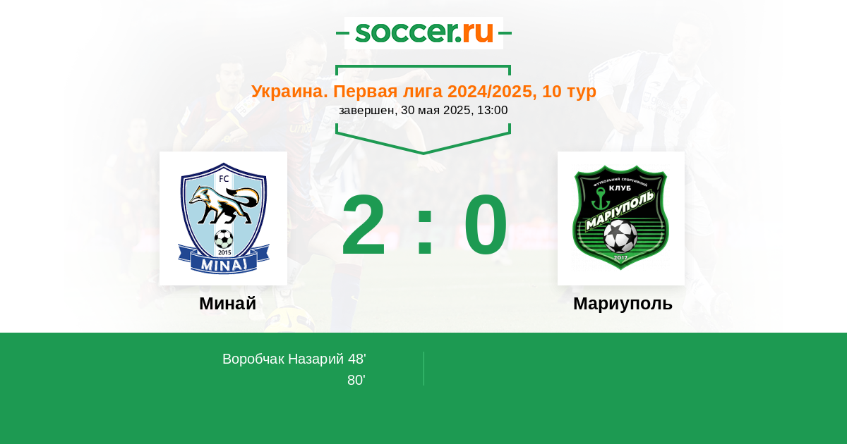 80' ГолЛоготип МинайA. Demchenko - 2:0