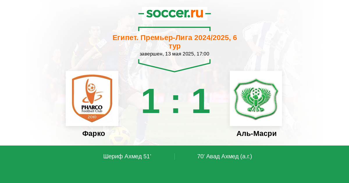70' АвтоголЛоготип ФаркоАвад Ахмед (4, з) - 1:1 (А)