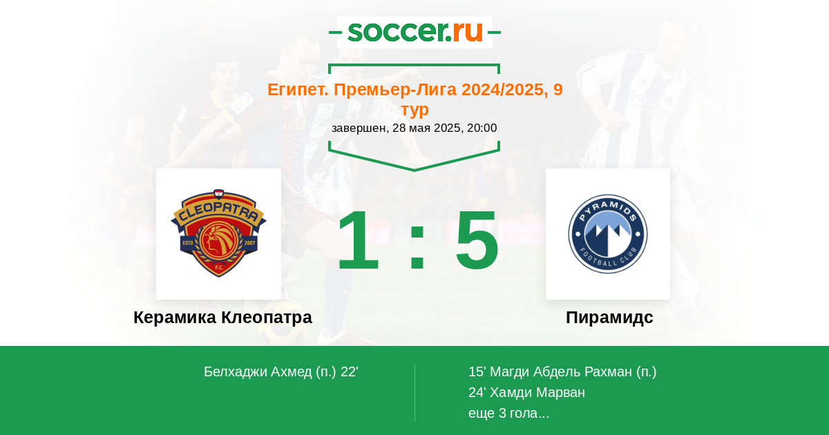 22' Гол с пенальтиЛоготип Керамика КлеопатраБелхаджи Ахмед (10, п) - 1:1 (П)