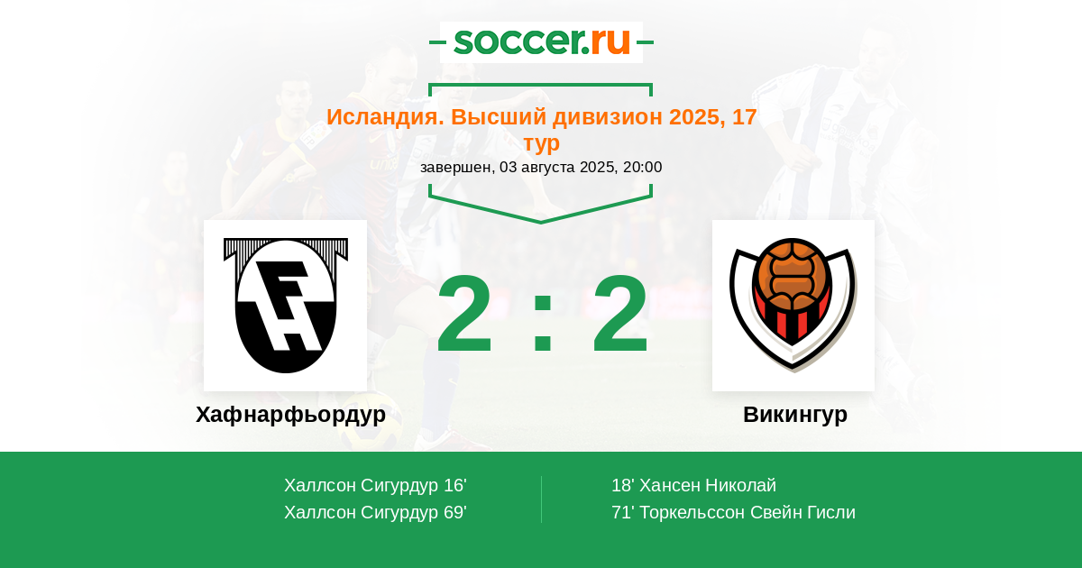 90+1' ЗаменаЛоготип ХафнарфьордурХаллсон Сигурдур (9) уходит с поля