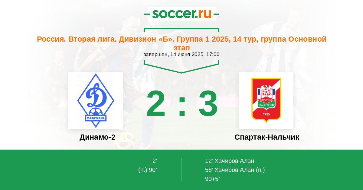 58' Гол с пенальтиЛоготип Спартак-НальчикХачиров Алан - 1:2 (П)
