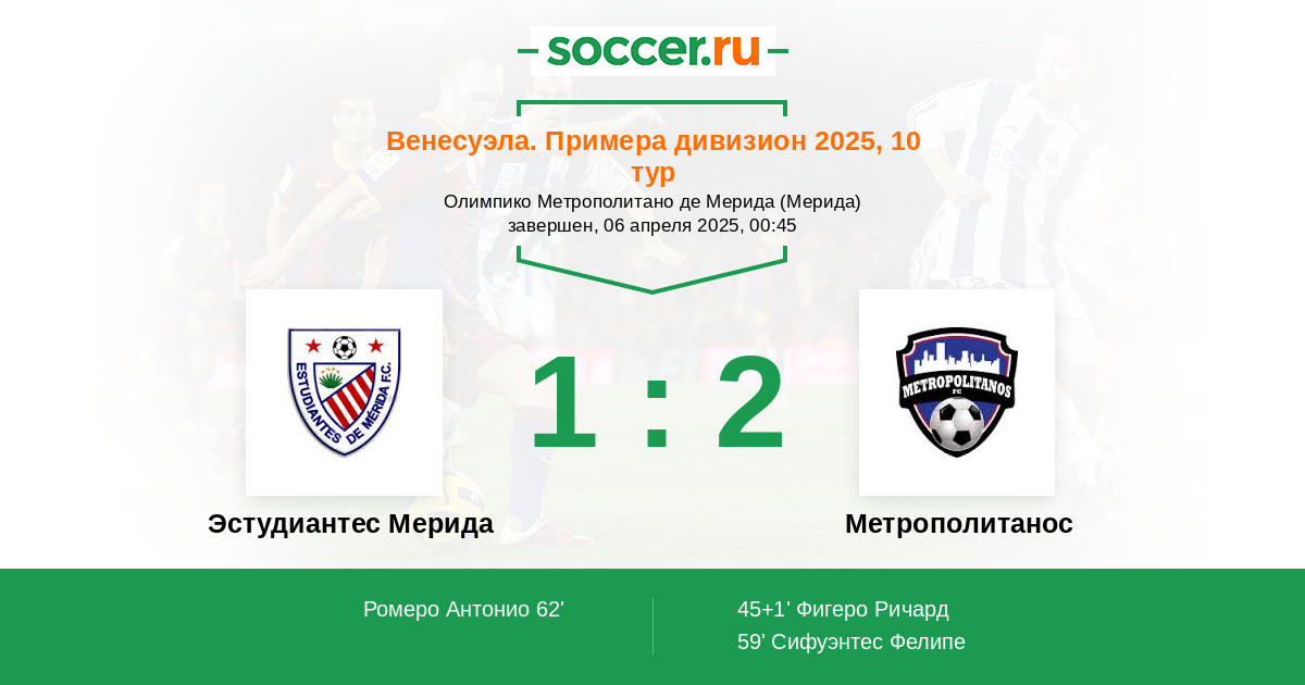 65' ЗаменаЛоготип Эстудиантес МеридаАкоста Эктор (25) уходит с поля
