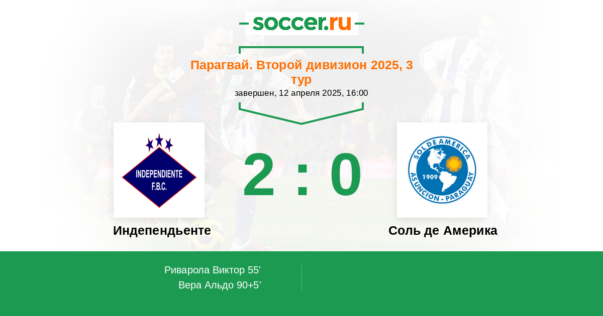 90+5' ГолЛоготип ИндепендьентеВера Альдо (7) - 2:0