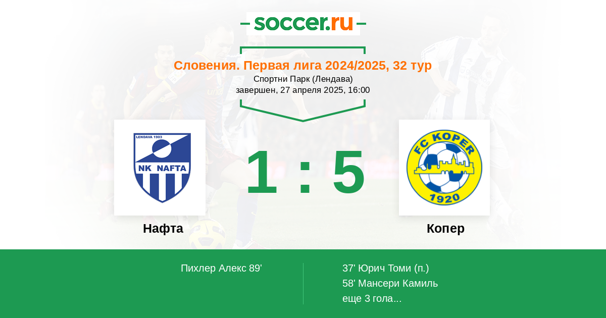 89' ГолЛоготип НафтаПихлер Алекс (18) - 1:5