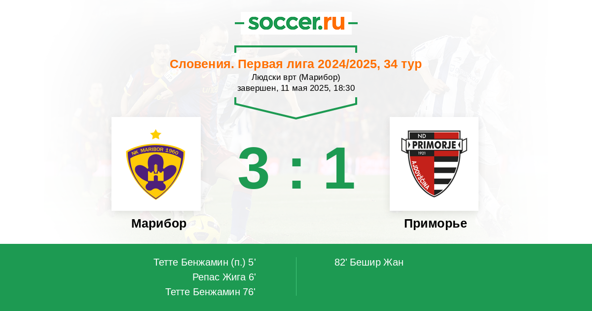 5' Гол с пенальтиЛоготип МариборТетте Бенжамин (30) - 1:0 (П)