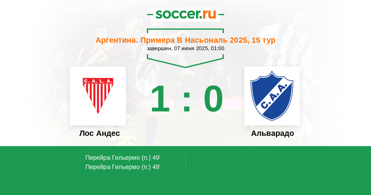 49' Гол с пенальтиЛоготип Лос АндесПерейра Гильермо (8) - 1:0 (П)