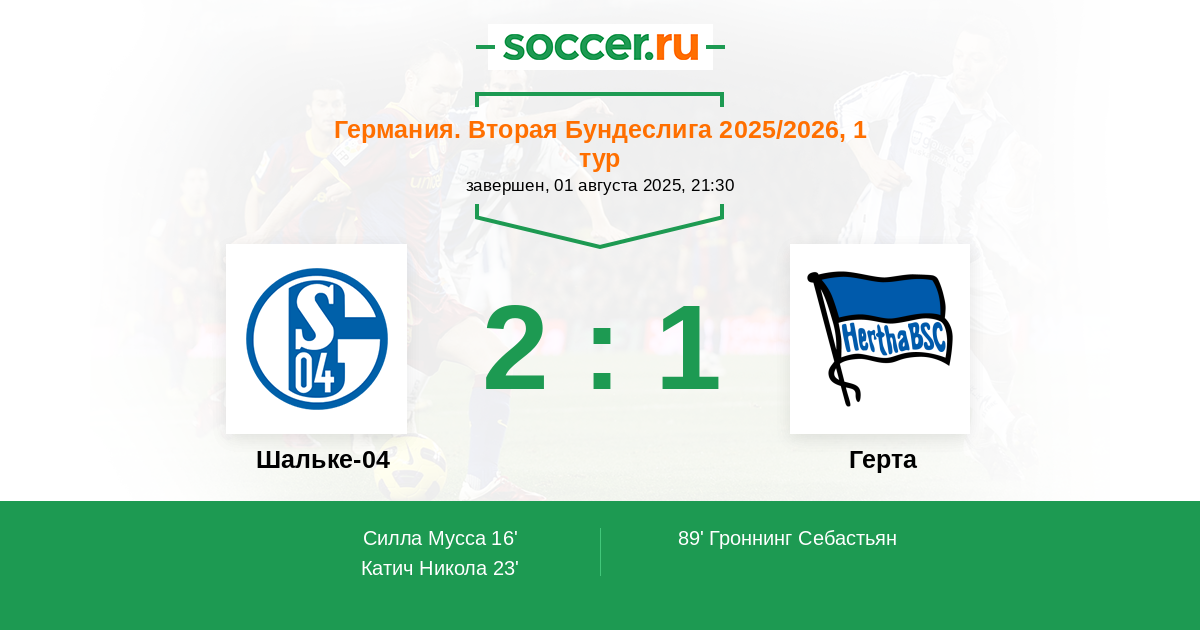 16' ГолЛоготип Шальке-04Силла Мусса (9, н) (Логотип Шальке-04Реммерт Петер (39, п)) - 1:0
