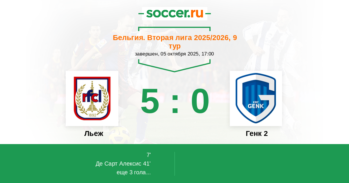 80' ГолЛоготип ЛьежF. Soelle (24) (Логотип ЛьежН'жо Эрик (16)) - 4:0