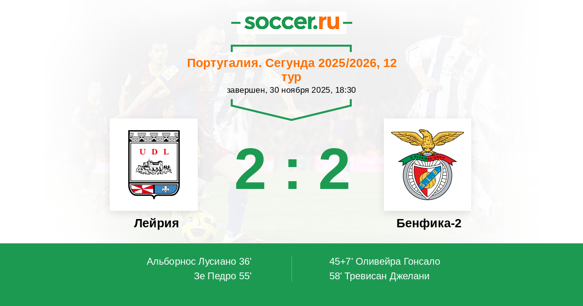 55' ГолЛоготип ЛейрияЗе Педро (16, з) - 2:1