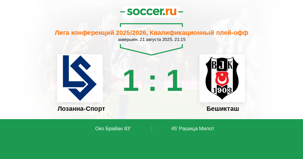83' ГолЛоготип Лозанна-СпортОко Брайан (5, з) (Логотип Лозанна-СпортКустодио Оливье (10, п)) - 1:1