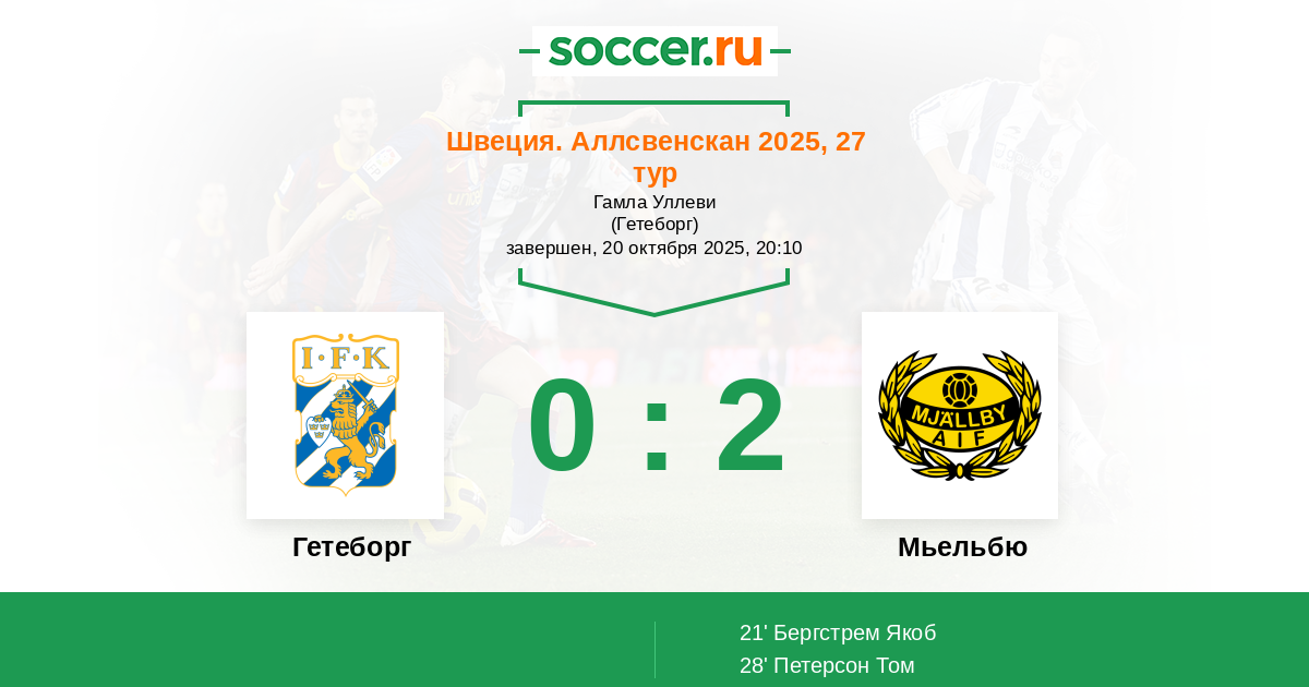 28' ГолЛоготип МьельбюПетерсон Том (24, з) - 0:2