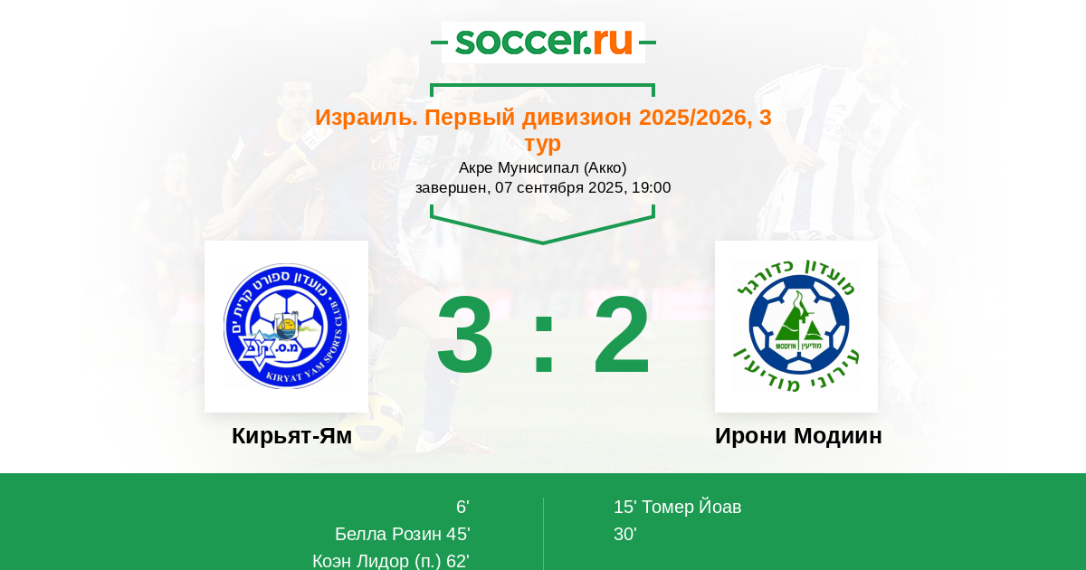 30' ГолЛоготип Ирони МодиинS. Broun - 1:2