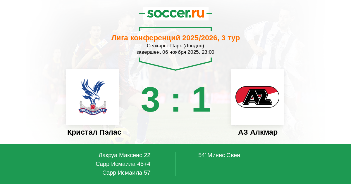 Кристал Палас выйдет заряжен на бой и битву за три очка. Для прославления клуба и на радость болельщиков! Надо учитывать атакующую мощь АЗ, перекрыть им доступ к воротам.