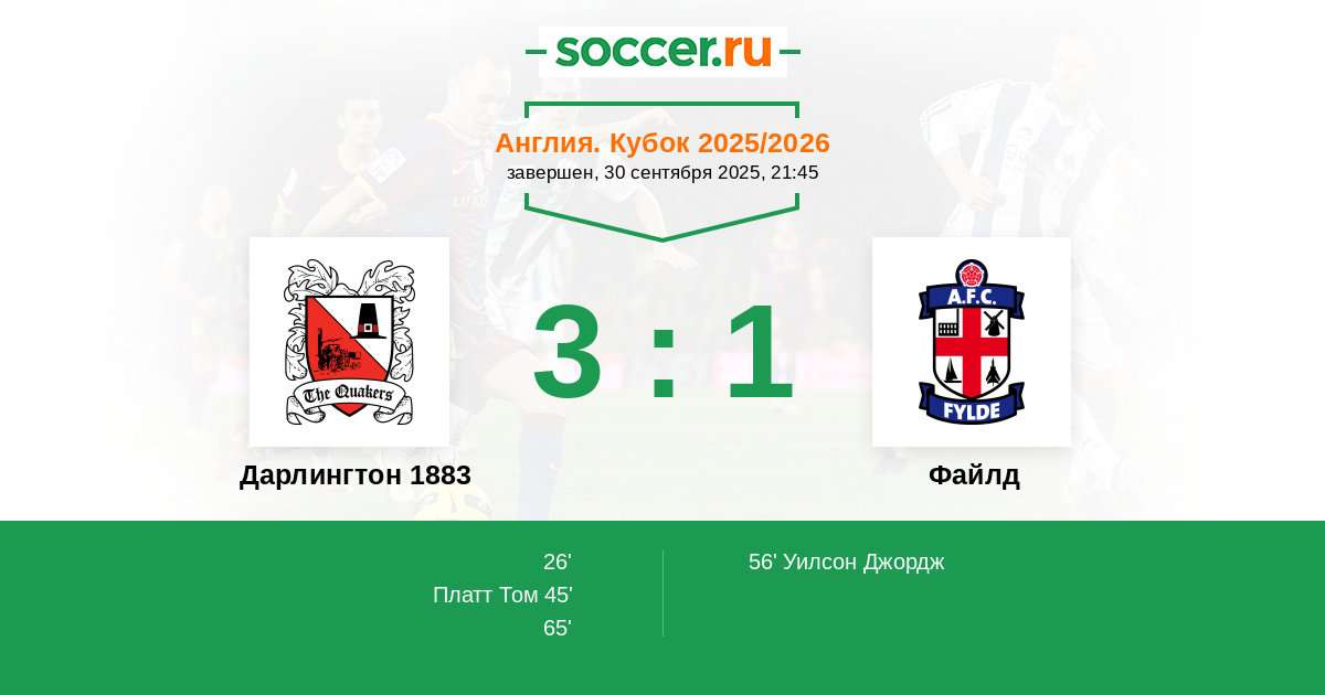 45' ГолЛоготип Дарлингтон 1883Платт Том - 2:0