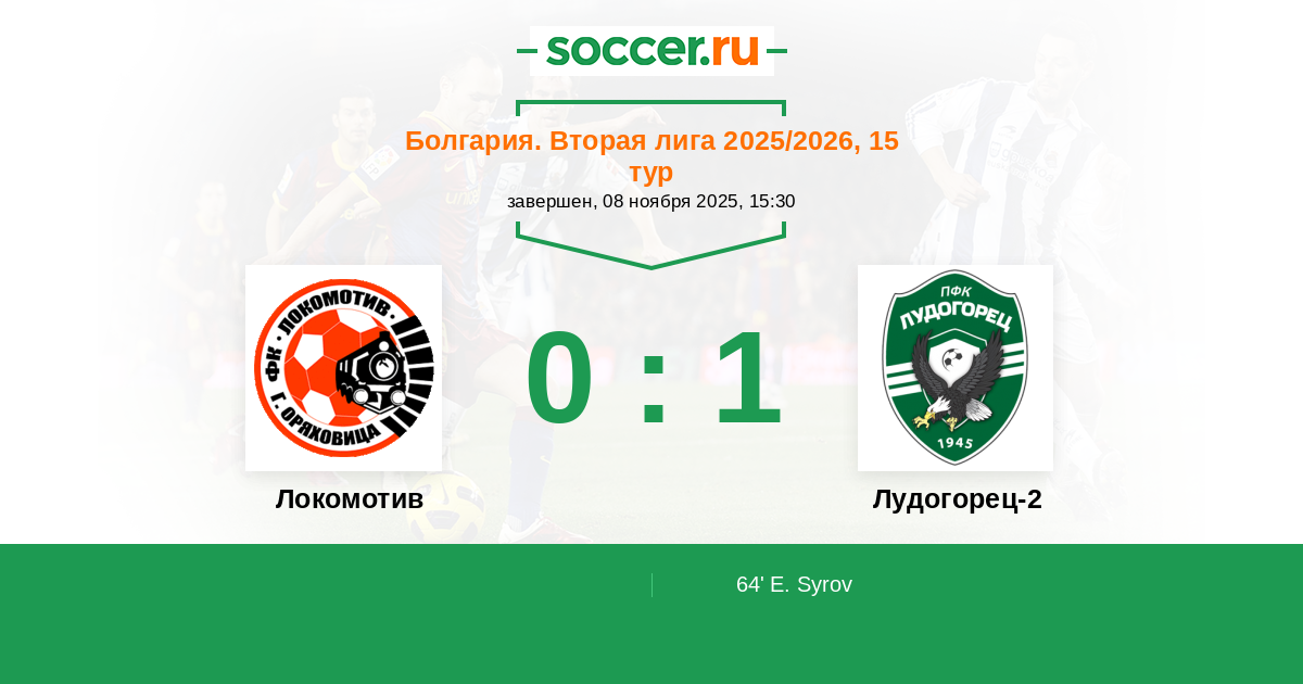 64' ГолЛоготип Лудогорец-2Сыров Елисей (75) - 0:1