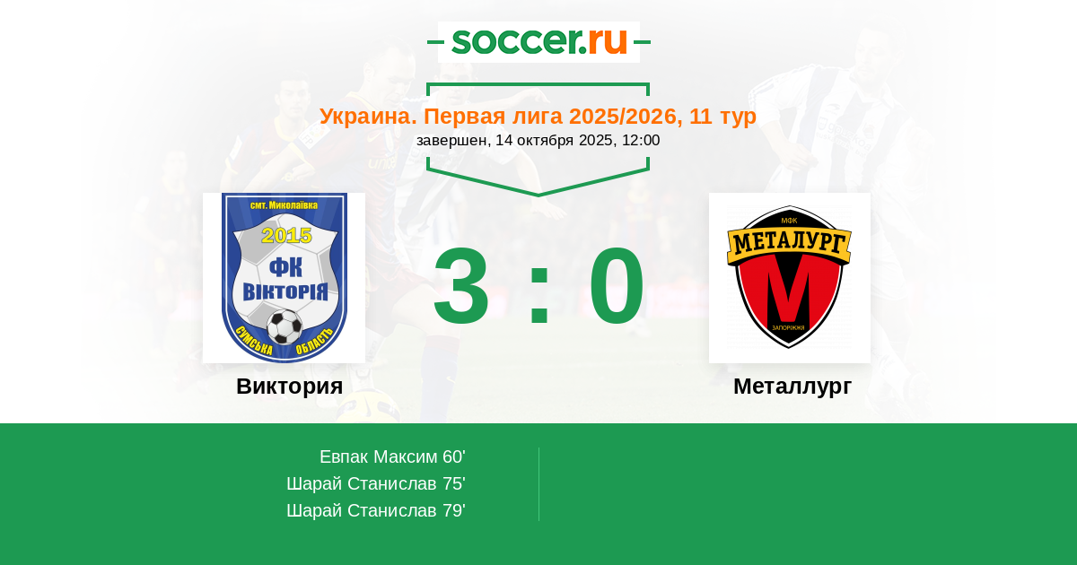 60' ГолЛоготип ВикторияЕвпак Максим (15) - 1:0