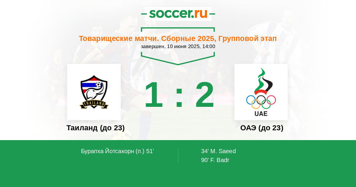 90' ГолОАЭ (до 23)Фахад Бадр (5) - 1:2