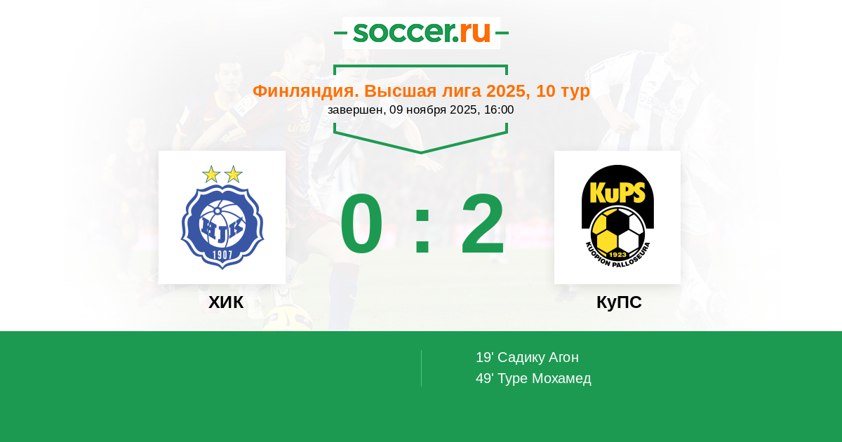 69' Не реализованный пенальтиЛоготип КуПССадику Агон (11, н) - 0:2