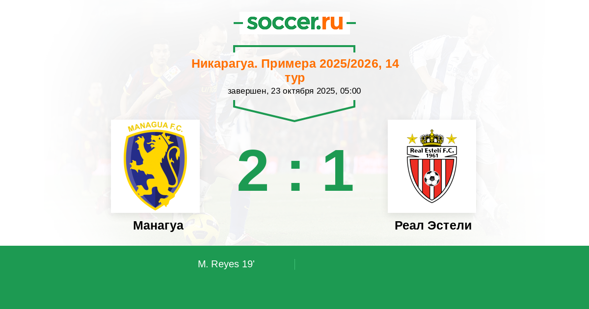 19' ГолЛоготип МанагуаM. Reyes - 1:0
