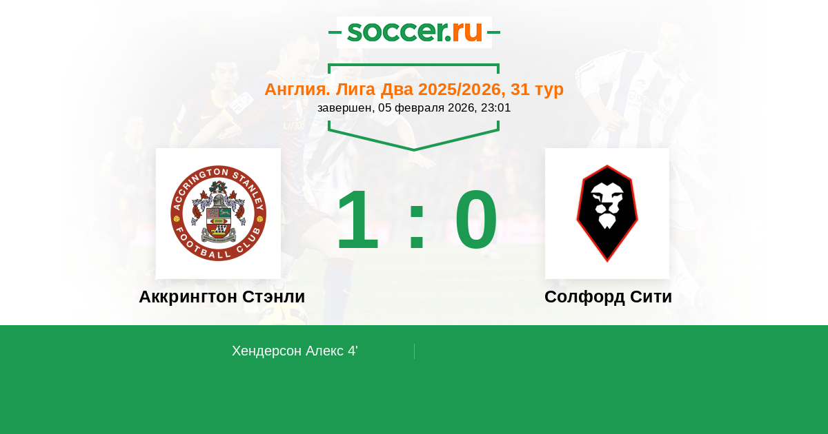4' ГолЛоготип Аккрингтон СтэнлиХендерсон Алекс (10, п) - 1:0