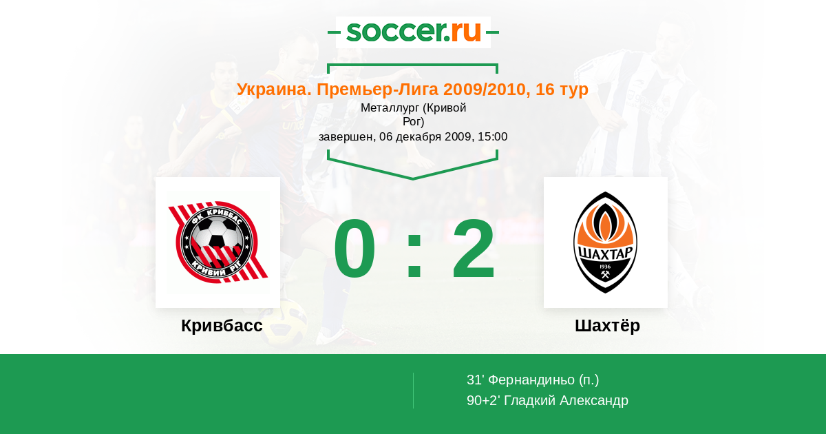 31' Гол с пенальтиЛоготип ШахтёрФернандиньо (п) - 0:1 (П)