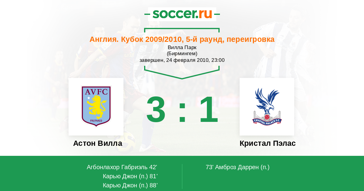 Астон Вилла - Кристал Пэлас