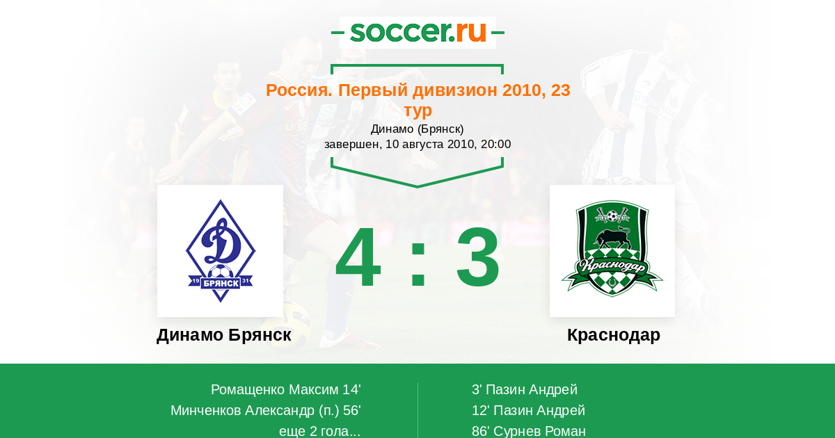 70' ЗаменаЛоготип Динамо БрянскФомичев Александр уходит с поля
