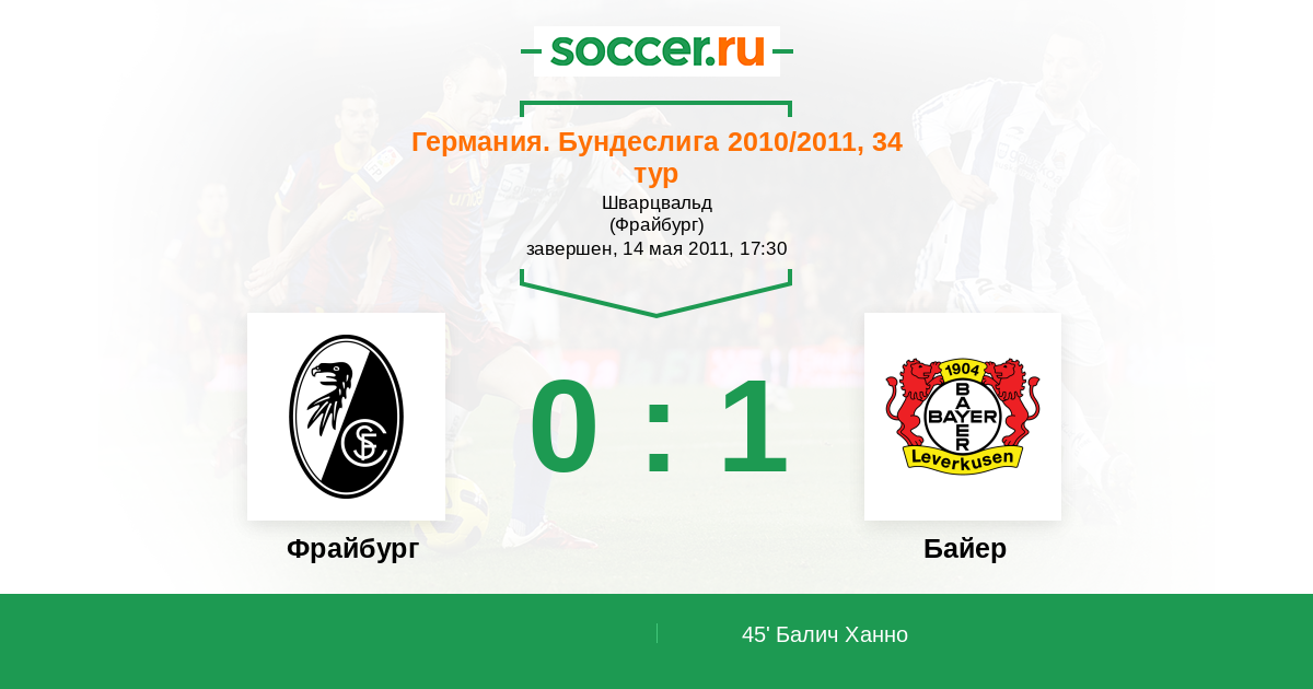 45' ГолЛоготип БайерБалич Ханно (14) - 0:1