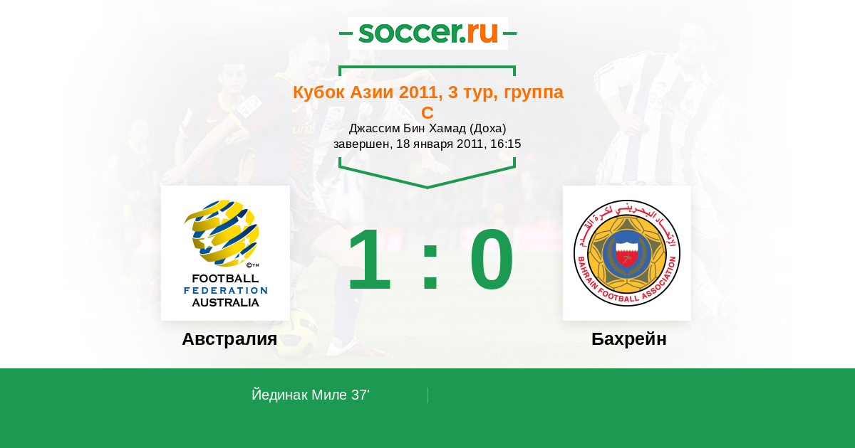 37' ГолАвстралияЙединак Миле (15) - 1:0
